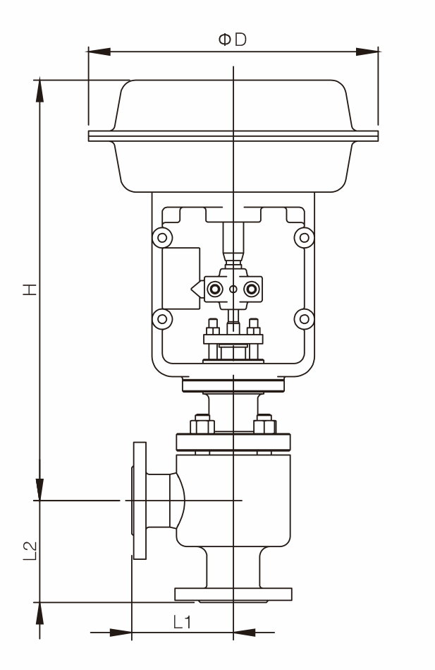 氣動薄(báo)膜角形高壓調節閥,閥芯有柱塞式和套筒式兩種型式。具有允許壓差大、噪音低、工作平穩等特點,用於(yú)壓差大,易產生汽蝕,且(qiě)使管線配成直角安裝(zhuāng)的高壓場合。
